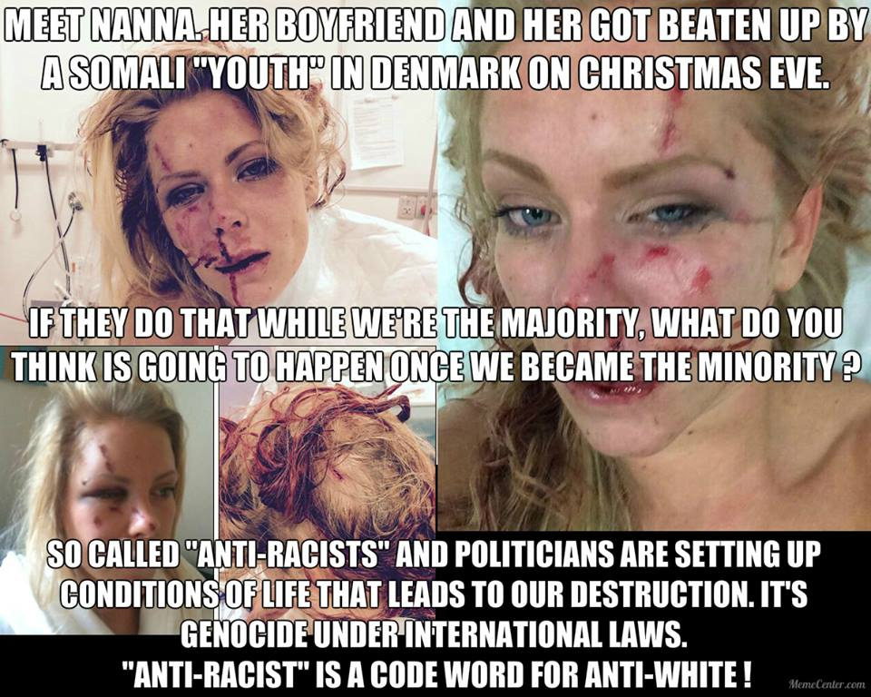 az Enghaveplads közelében érte a brutális támadás. Egy 16-17 éves arra bicikliző "fiatal" kötött beléjük minden ok nélkül, és mért csapást egy üveggel a dán férfi fejére. Egy alagsorból további társai rontottak elő vasláncokkal, és támadtak rá a fehér bőrű párra.
