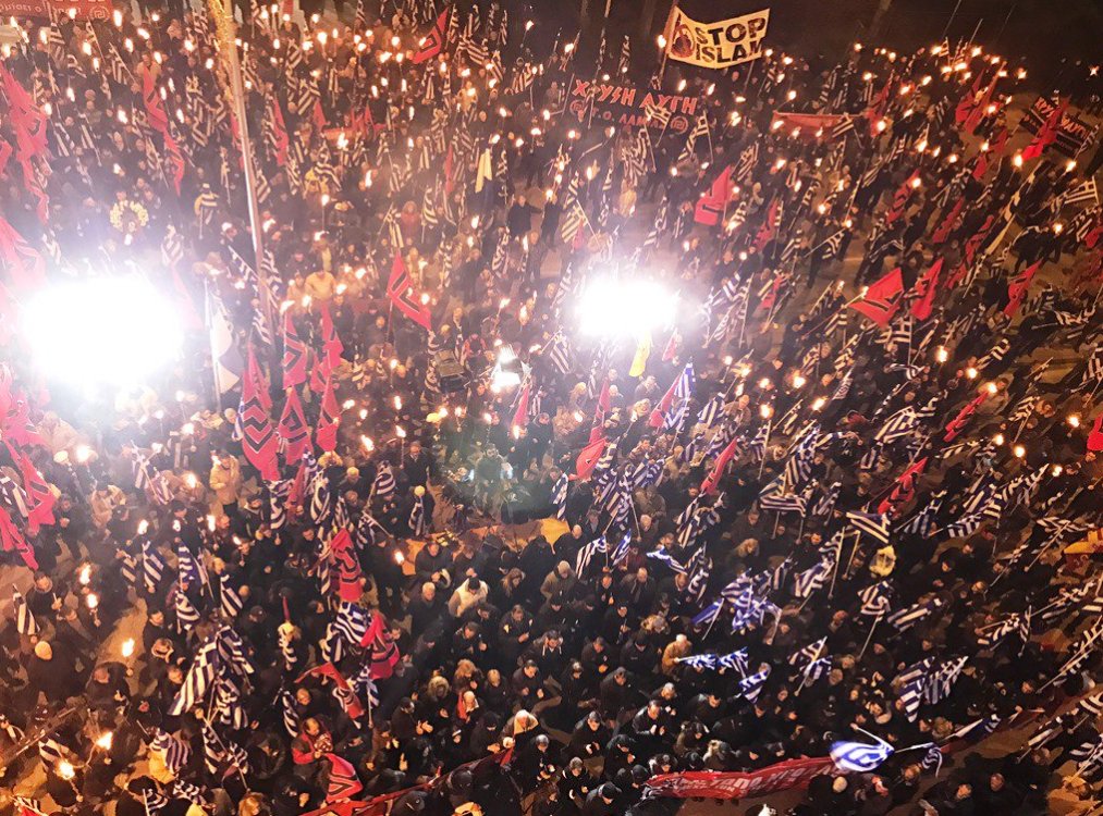 Több ezren ezren vonultak fel Athénban szombat este a görög nacionalista Arany Hajnal párt felhívására, ahol az iszlám invázió ellen tiltakoztak és éltették Donald Trumpot.