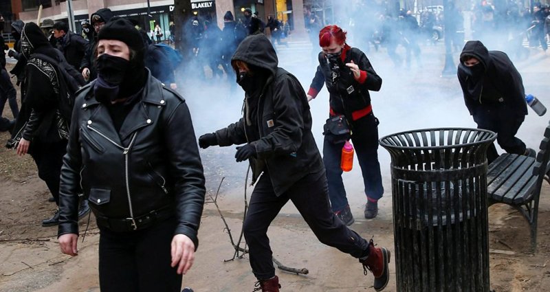 A Donald Trump amerikai elnök ellen is tüntetők, akik közül sokan fekete maszkot viseltek, “Antifasiszta Akció” feliratú zászlókat lengettek és “nácik, haza!” kiáltásokat hallattak, a Trump-hívők közül sokak kezében amerikai nemzeti lobogó volt és azt skandálták: “USA, USA”. Az ellentüntetők köveket és üvegflakonokat hajigáltak, s amikor a helyzet kezdett elfajulni, rohamrendőrök léptek közbe. Mintegy 200 embert elkülönítettek, egyenként igazoltatták és lefotózták őket, és csak ezt követően engedték el őket.