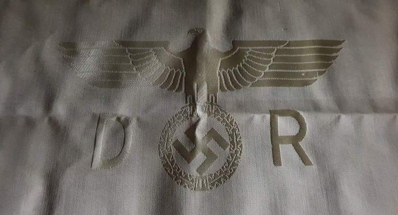 Facebook-oldalán történelmi ritkaságnak nevezte a tételt, amely egy szvasztikával díszített asztalterítőt, szalvétákat és ezüst étkészletet tartalmaz.