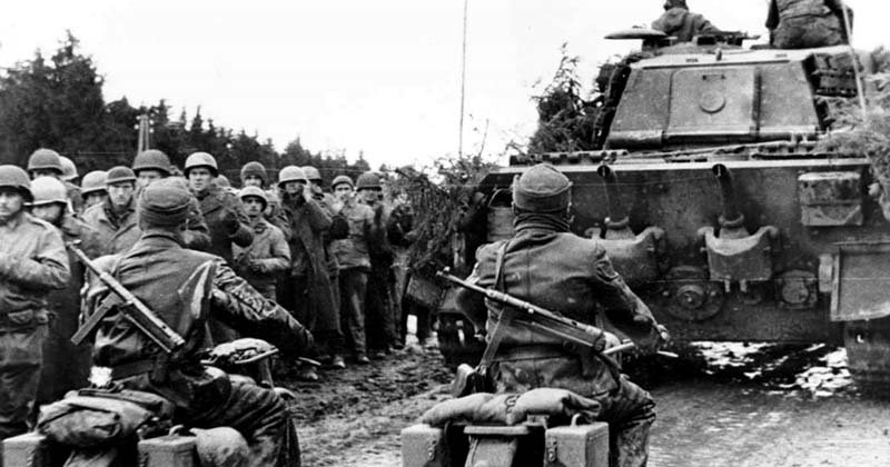 Német csapatok nyomulnak előre az ardenneki offenzíva alatt