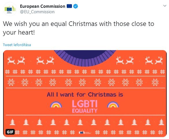 A meglepő karácsonyi üzenet ugyanis így jött december 24-én szenteste Twitteren az Európai Bizottságtól: „Semmi mást nem kívánunk karácsonyra, mint LMBTQ-jogokat”.