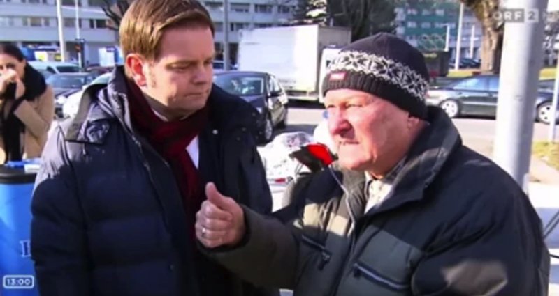 Az általuk közzétett jelenetben az látható, hogy egy nyolcvan fölötti férfi odalép Markus Abwerzgerhez, és elkezdi neki magyarázni, hogy ő még a Hitlerjugendben kapott kiképzést, ahol rend volt és fegyelem, és hogy ma már bezzeg azt sem lehet mondani, hogy büdös zsidók, mert azonnal lenácizzák az embert. Abwerzger szótlanul hallgatja a szóáradatot, még mintha egyetértőleg bólintana is. Snitt vége, az üzenet egyértelmű: az FPÖ egyáltalán nem határolódik el a náciktól, mert vagy maguk is nácik, vagy tudatosan kiszolgálják a náci szavazók igényeit.