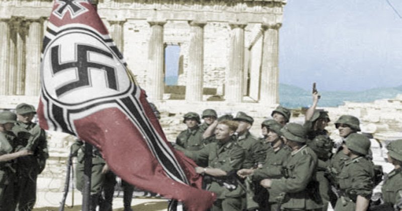 A görög verzió szerint a hitleri erők 1941 és 1944 között tartották megszállás alatt Görögországot, és észak-afrikai hadjáratuk finanszírozására sarcot szedtek tőle. Emiatt hiperinfláció alakult ki az országban, és több ezer görög éhen halt. A németek 476 millió márka átadására kötelezték Athént, ami görög tisztségviselők számításai szerint ma 6-10 milliárd eurónak felel meg. Egy görög parlamenti bizottság három évvel ezelőtt készített egy jelentést, és eszerint akkori értéken az ország II. világháborús kára 289 milliárd euró volt.