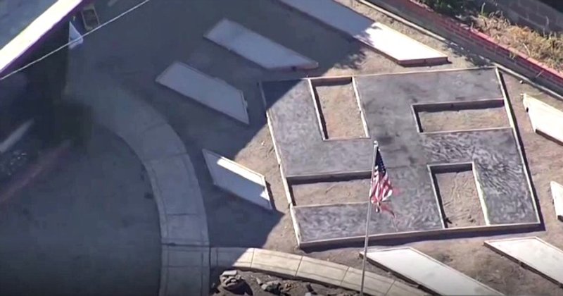 Hatalmas horogkeresztet, vagyis szvasztikát betonozott háza előkertjébe a kaliforniai El Sobrante városában élő Steve Johnson.