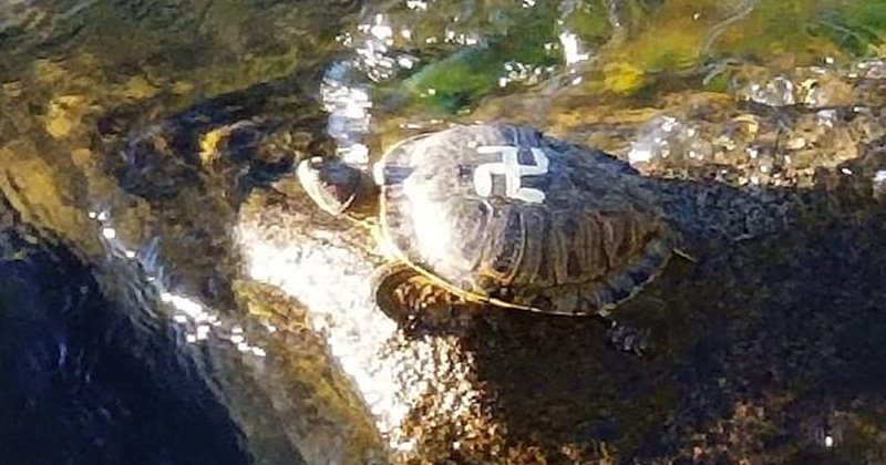 A közelmúltban arra lettek figyelmesek a Seattle közelében fekvő Gene Coulon Emlékpark látogatói, hogy olyan teknősök bukkantak fel, akiknek a páncéljára valaki fehér szvasztikát festett - írja a Vice.