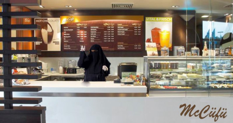 „Minden alkalmazottunk fejkendőt hord, és két női alkalmazottunk burkát. Ők afgánok és szírek, mivel ez a mi vallásunk és szokásunk, de remélem, hogy a németeknek is kedvére lesz az üzlet.”