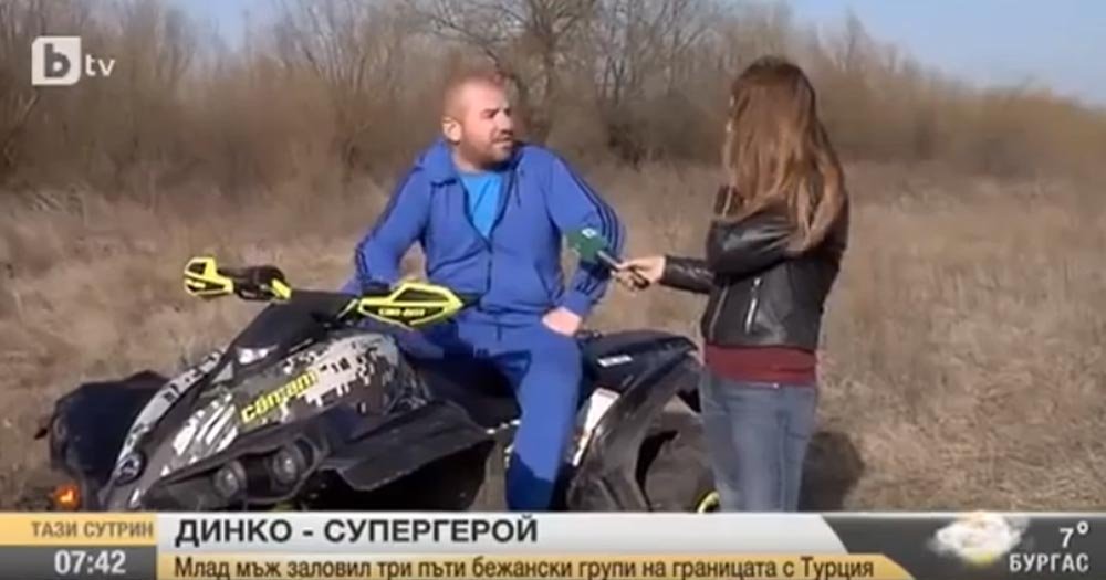Így van ezzel egy Dinko Valev is, aki az elmúlt hónapokban 25 migránst fogott el a bolgár–török határ mellett, Dolno Jabalkovónál. A férfit azonnal felkapta a bolgár média – annál is inkább, mert kézzel fogható bizonyítékai voltak arra, hogy a migránsokat valóban elfogta: videót készített róluk, amiben ki is kérdezte őket.