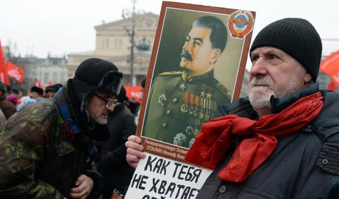 A hozzávetőleg 200 demonstráló a 2015-ös, szerintük katasztrófával fenyegető költségvetés és a rubel drasztikus leértékelése ellen tüntetett. A tiltakozók felszólították Vlagyimir Putyin elnököt, hogy azonnali hatállyal távolítsa el a kormányt. A tiltakozók Sztálin- és Lenin-képeket, valamint többek között „Nagyon hiányzol, Szovjetunió!” feliratú táblákat emeltek a magasba.