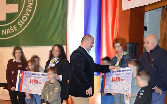 1488 eurós csekket adott egy szegény családnak a szlovák Mi Szlovákiánk-Néppárt elnöke, Marian Kotleba, és ezért rendőrségi eljárás indul ellene.