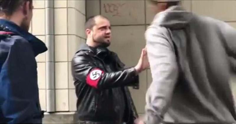 A fehér férfiról fotó készült, a fénykép villámgyorsan terjedni kezdett a közösségi oldalakon, főleg az antifa csoportokban.
