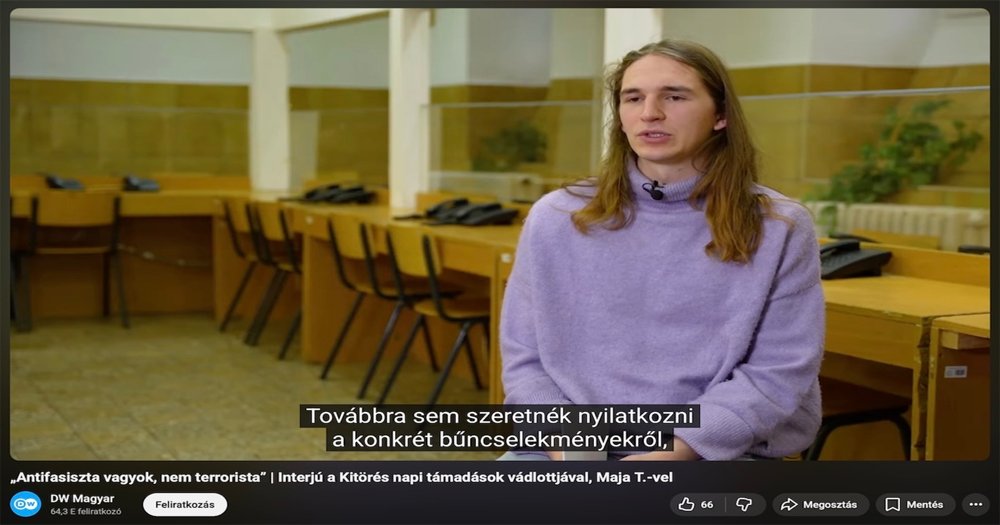 Gyomorforgató riportban sajnáltatja a 2023-as budapesti antifa terrortámadásokban való részvételért a Fővárosi Törvényszék előtt álló, magát nőnek képzelő és ezért nevét hivatalosan is Majára változtató Simeon Ravi Truxot a Deutsche Welle magyar kiadása.
